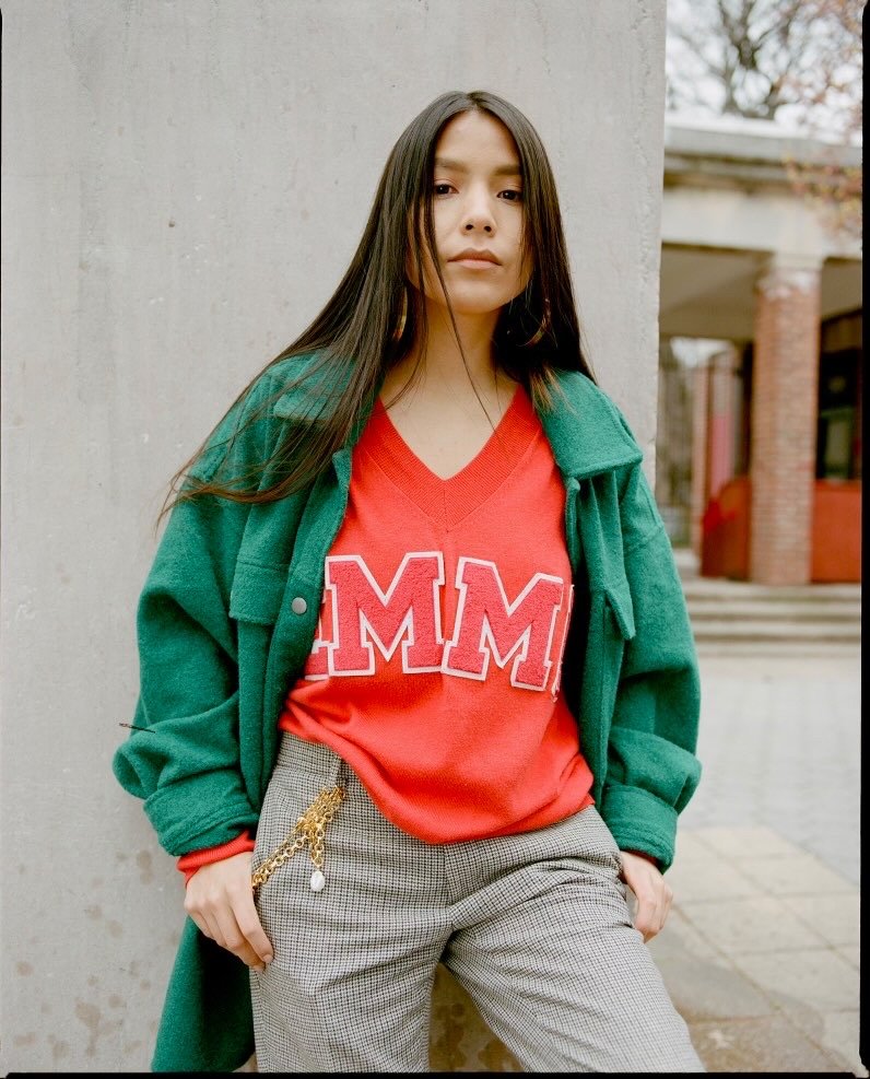 Photographer: Two Hawks YoungStyled/Talent: Diannah ReidHair/MUA: Deyah CassadoreHair/MUA Assistant: BrittaEarrings: El Techichi JewelrySweater: Emme Studios